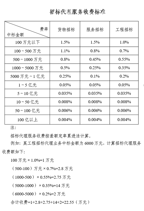 招標代理服務費的取費,根據(jù)《國家計委關(guān)于印發(fā)〈招標代理服務收費管理暫行辦法〉的通知》(計價格[2002]1980號)、《國家發(fā)展改革委辦公廳<關(guān)于招標代理服務收費有關(guān)問題的通知>》(發(fā)改辦價格[2003]857號)、《國家發(fā)展改革委關(guān)于降低部分建設項目收費標準規(guī)范收費行為等有關(guān)問題的通知》(發(fā)改價格[2011]534號),以中標金額為基數(shù),采用差額定率累進法計算,收取招標代理服務費。